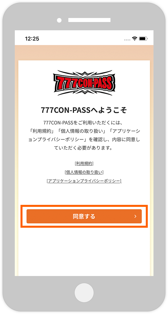 アプリ初回起動画面の「同意する」をタップ