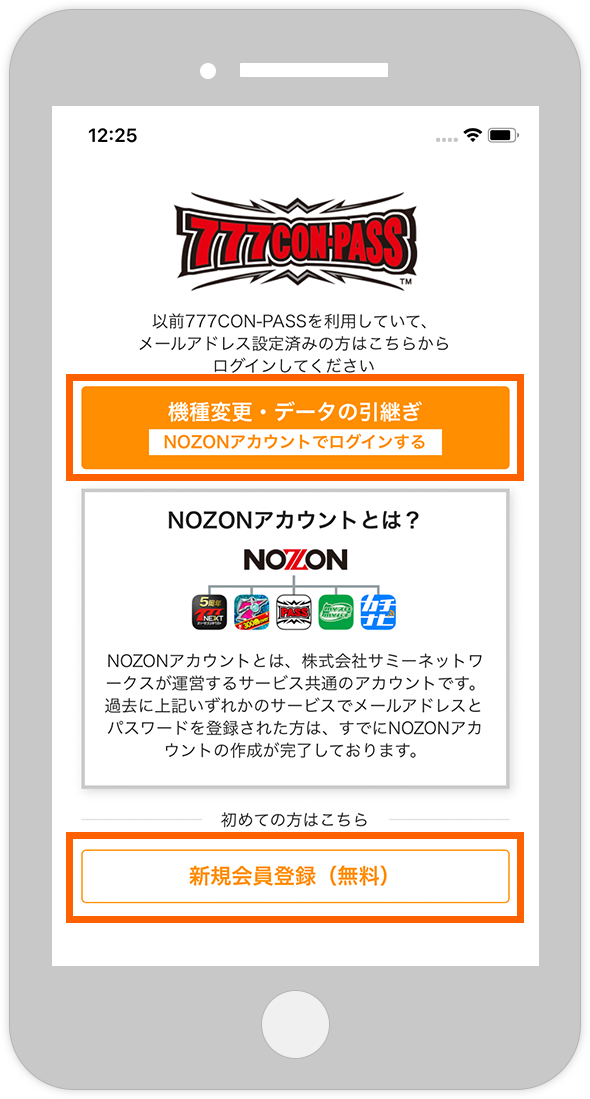アプリ初回起動時は利用規約をご確認後「同意する」をタップし NOZONアカウントをお持ちのユーザー(※)は 「 NOZONアカウントでログインする」をタップしてください。 NOZONアカウントをお持ちでないユーザーは 「新規会員登録(無料)」をタップしてください。
